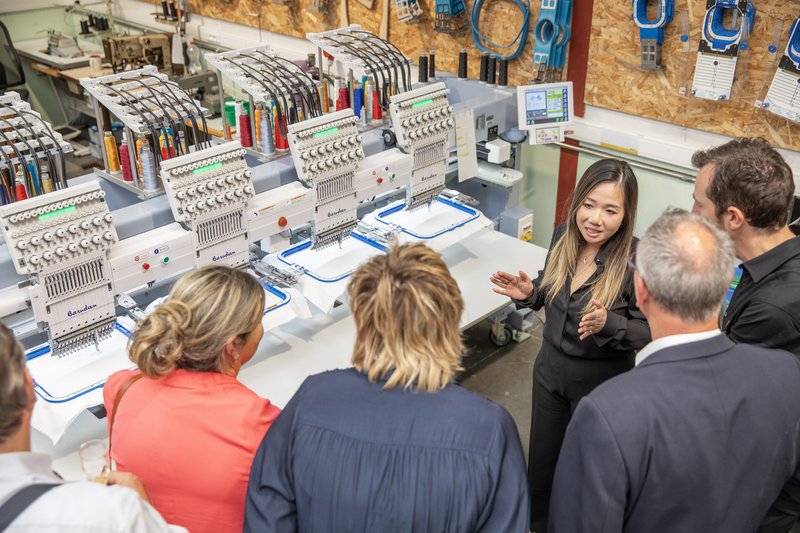 De kracht van Veys zit niet alleen in het aanbod, maar vooral in de aanpak. Het team van twaalf medewerkers is klein, maar ervaren. Ze geven gericht advies, verzorgen passessies op locatie, én borduren en bedrukken kledingstukken in eigen huis.